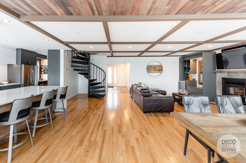 MANDAT | Le souhait des propriétaires de cette maison au bord de l’eau était de pouvoir l’adapter pour que celle-ci corresponde mieux à leur vie de famille et ainsi pouvoir y demeurer encore pendant longtemps. La priorité? Le décloisonnement de la cuisine ! Plus besoin de s’isoler lors de la préparation des repas et les longues soirées en famille autour de l’îlot son plus agréable. Désirant respecter l’âme de la maison, un style contemporain rustique a été exploité : l’élargissement des fenêtres, les matériaux nobles et la sobriété sont au cœur de ce projet. Véritable havre de paix en ville et à proximité de la nature.